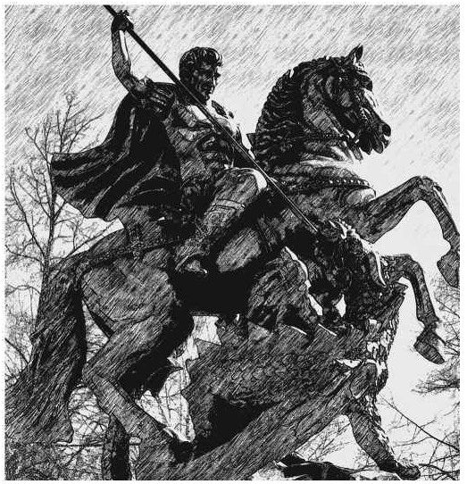 Три дня назад он видел интересный сон. Настолько яркий, что всё это время до отъезда ходил под впечатлением… В этом сне Юра стоял на площади трёх вокзалов, вымощенной старинным булыжником, кругом ни души, только пронзительный ветер, над головой низко пробегают свинцовые тучи. Вдруг величественный раскат грома чуть ли не оглушил. Подняв голову, Юра увидел, как тучи расступаются и в центр площади падает луч солнца. Далее предстала прекрасная картина: тучи начали расступаться шире и на белоснежном коне показался всадник, облачённый в сверкающие доспехи. У него был божественный лик, обрамлённый серебрящейся бородой. Юрий ощутил неимоверную радость внутри, это был его покровитель Святой Георгий с золотым копьём в руке. Он прямо с неба грациозно соскочил на постамент и замер в золотом изваянии во всей своей красе… Это было чудесное видение и хороший знак, было ощущение, что не Юра принимает решение об отъезде, а некая сила сама его ведёт.