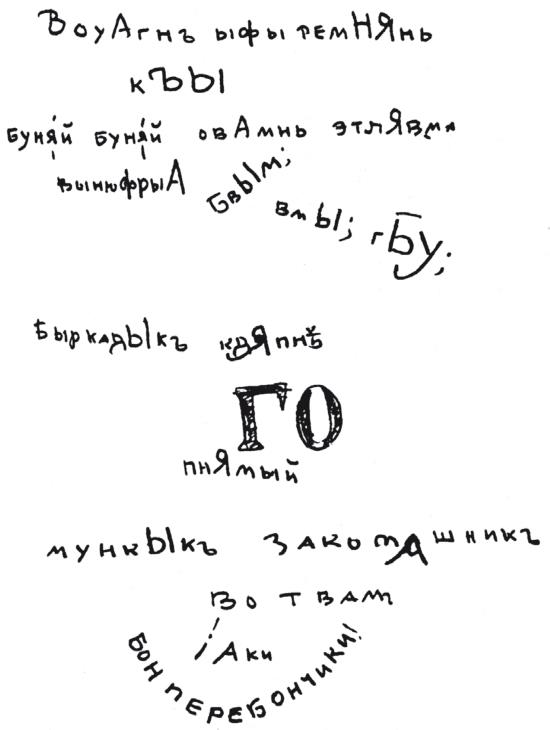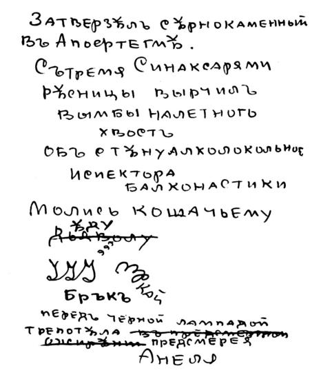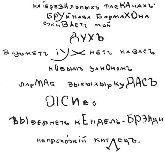 Я полуЧИл вдругТРЕТЬБожЕственного откровЕнияСепоте́сни угЫСлиВЫмахал Крюк балбаХАЙДаже ПРИсный апТЕкарьБулГАКиз кнИжицывЫстриг.<1919–1920>