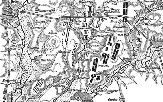 1 декабря союзная армия, совершив за четыре дня 60-километровый марш, заняла позиции на линии Коваловиц – Праценские высоты.