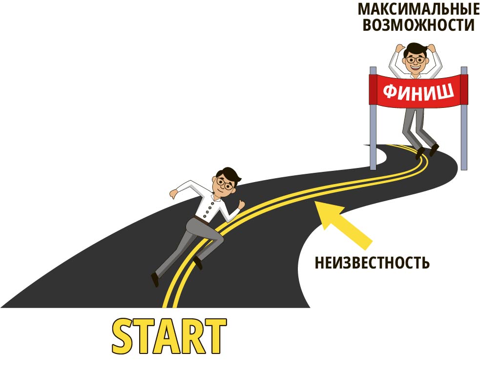 Зоне комфорта противопоставляется зона риска. Это место, в котором скрывается наибольшее количество возможностей и в которое нам страшнее всего идти, поскольку там все крайне смутное и неопределенное. А неопределенность – это то, что нас сильно пугает даже при условии, что мы осознаем, чего можем добиться, поборов свои комплексы.