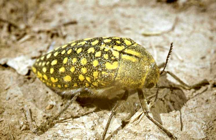Неужели в Средней Азии всегда так? Стоит кому-то приехать, как небо хмурится и, того и гляди, пойдет дождь. Небо над пустыней и тугаями затянули обыкновенные серые тучки. Дождя, правда, не было, и мы с Георгием Федоровичем решили после завтрака отправиться в путешествие по окрестностям. Однако еще до завтрака в двадцати шагах от палатки начальник небрежно показал мне на огромную, очень красивую златку, запросто как ни в чем не бывало сидящую на ветке чингила. Длина златки миллиметров тридцать пять, она сделана как будто бы из зеленой бронзы, испещрена желтыми пятнами и усеяна декоративными вмятинками – великолепно вычеканенная дорогая брошь. По-латыни имя этого жука звучит так: «юлодис». Можете себе представить, с какой радостью я на него набросился. Фотографировать без солнца не хотелось, пришлось посадить драгоценную находку в коробочку из-под пленки и поставить эту коробочку рядом с другой, где сидела уже кобылка пезотметис. Так был сделан второй шаг на пути создания моего зоопарка, вернее – энтомопарка…