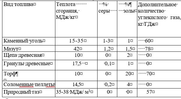 Энергетические характеристики различных видов топлива