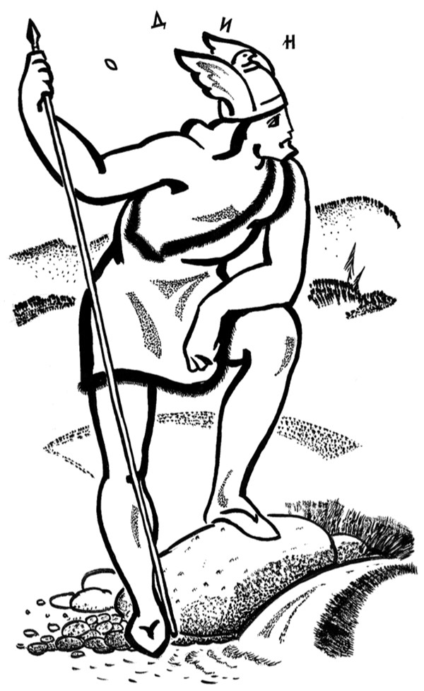 Бог войны Тир, сын владыки мира и сестры морского великана Гимира, – третий из Асов после Одина и храбрейший среди них. У него одна левая рука, так как правую он потерял, спасая богов от одного страшного чудовища – от какого, вы узнаете потом, – но это не мешает Тиру быть искусным воином и принимать участие в сражениях.