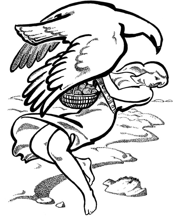 – Ах, это ты, Локи! – воскликнула обрадованная Идун. – Но как же ты унесёшь и меня и мою корзину? – Ты держи её, а я буду держать тебя, – предложил бог огня.