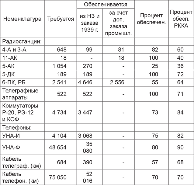 Некомплект средствами связи формирований покрыть в первом квартале 1940 года.
