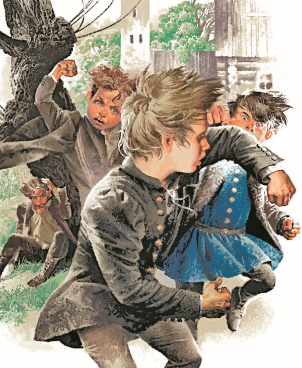 Мартин возненавидел ту часть города, в которой жил, и уходил бродить туда, где его никто не знал. Но однажды и вдали от дома он всё-таки повстречался со своими мучителями. Он увидел мальчишек издалека и быстро зашагал прочь, полагая, что они его не заметили. Но вот мимо него пролетел камень, следом ещё один, и ещё. Тогда Мартин побежал. За ним с гиканьем и свистом помчались мальчишки. Скоро Мартин оказался в незнакомом месте, непохожем на остальной город. Он увидел обширное бревенчатое строение без окон и дверей – Русский торговый двор, как он узнал впоследствии, – и побежал вокруг него, надеясь обмануть преследователей. Но они угадали его намерение. Когда он выскочил с другой стороны, собираясь припуститься обратно, он наткнулся на троих мальчишек. Они захохотали отвратительным глумливым хохотом. Мартин оглянулся кругом, как загнанный зверёныш. Бежать было некуда. Впереди эти трое, сзади приближается топот остальных преследователей. Возле единственного проулка, в который можно было бы юркнуть, стоит мальчишка с луком в руках и стрелой, положенной на тетиву. И в душе Мартина вдруг вспыхнула такая злоба, какой он ещё никогда не испытывал. Он бросился вперёд к троим хохочущим мальчишкам и с разбегу ударил самого большого. Тот упал. Вместо того чтобы задать тягу, воспользовавшись замешательством врагов, Мартин неожиданно для самого себя ударил другого, потом третьего. Тем временем подоспели остальные и ринулись на него. Мартин оказался у стены. Ему разбили губу, и он чувствовал во рту неприятный солоноватый вкус крови. Но это было уже не важно. Мартин сделал открытие. Оказывается, если стоять спиной к стене, которая мешает врагам зайти сзади, можно держаться одному против нескольких. И как только возле него появлялась одна из этих ненавистных рож, он бил по ней кулаком.