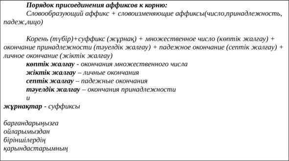 казахского языка и знание Закона сингармонизма.