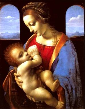 Параллельность благополучия и неблагополучия сохраняется и в картинах, на которых у мадонны уже родился ребенок.