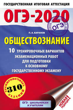 ОГЭ-2020. Обществознание. 10 тренировочных вариантов экзаменационных работ для подготовки к основному государственному экзаменуПетр Анатольевич БарановВниманию выпускников 9 классов образовательных организаций предлагается учебное пособие для подготов…
