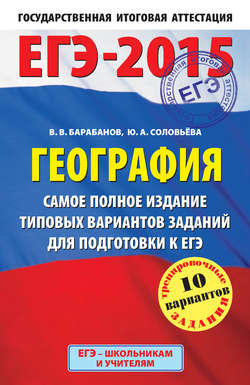 ЕГЭ-2015. География. 30 типовых вариантов экзаменационных работ для подготовки к ЕГЭЮлия Алексеевна СоловьеваВниманию школьников и абитуриентов впервые предлагается пособие для подготовки к ЕГЭ, которое содерж…