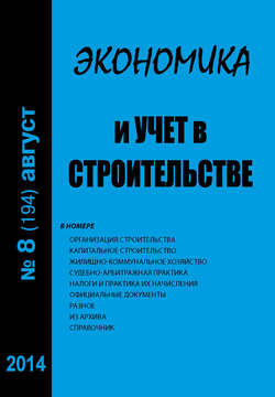 Экономика и учет в строительстве №8 (194) 2014Автор не определенПрактический специализированный журнал «Экономика и учет в строительстве» рассчитан на бухгалтеров, …